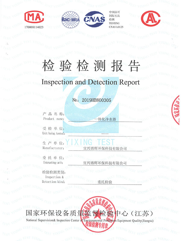 一體化凈水器檢驗檢測報告