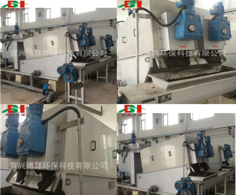 2、在絮凝混合槽內(nèi)注入高分子絮凝劑,通過攪拌后形成礬花,經(jīng)過疊螺主體濃縮部的重力濃縮后進入脫水部。