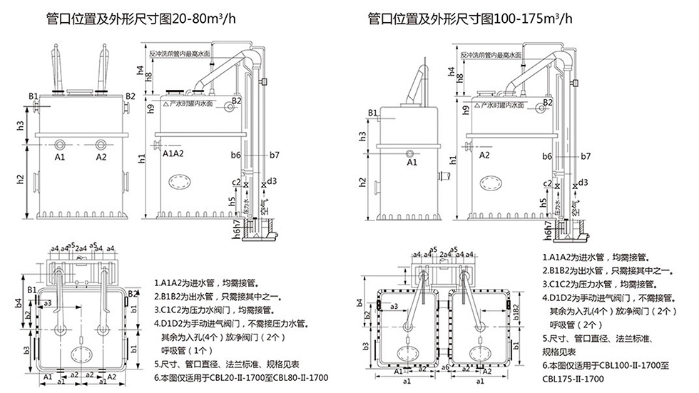 無閥過濾器中設(shè)置的進(jìn)水分配水箱和U形進(jìn)水管是為了避免空氣吸入池內(nèi),因?yàn)楫?dāng)有空氣吸入時(shí),在運(yùn)行后期可能形不成虹吸,而且如不設(shè)此U形管,則在反洗后期,進(jìn)水管就成了虹吸破壞管。