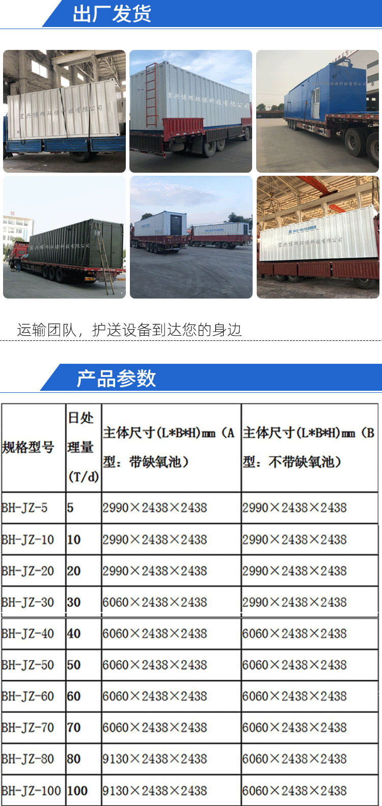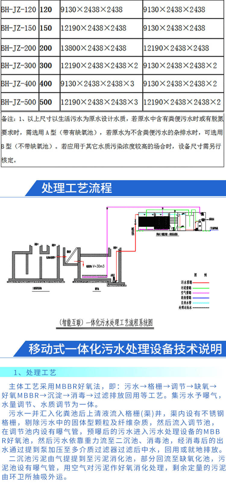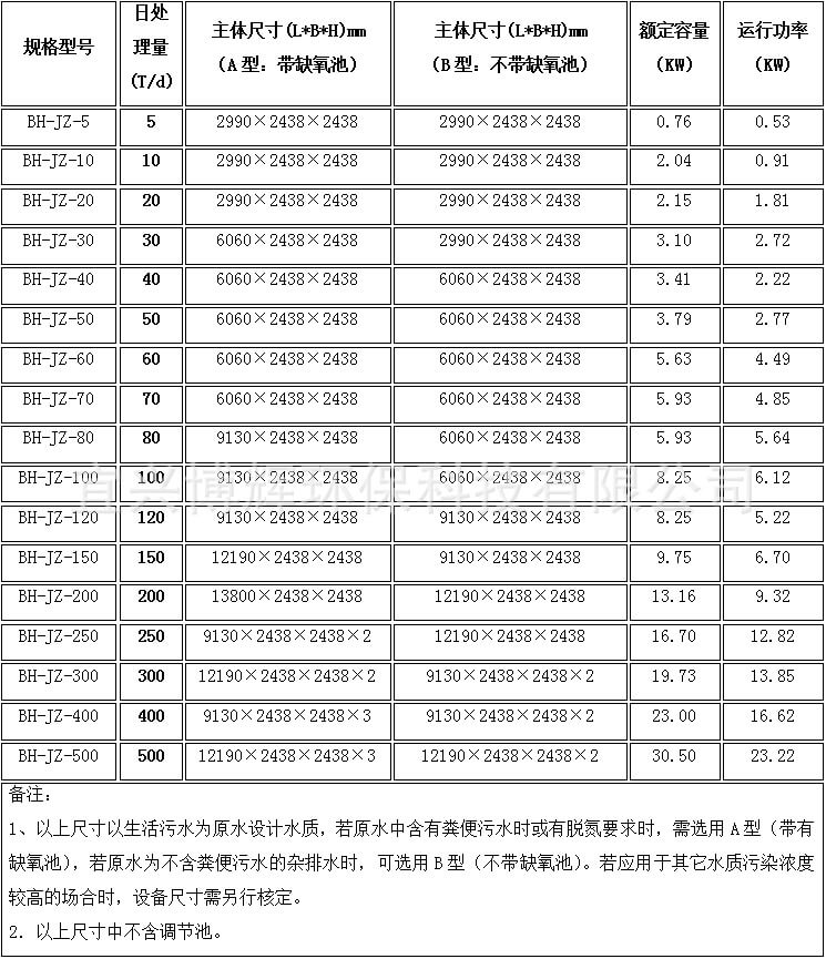 七、BH-JZ一體化污水處理設(shè)備主要規(guī)格參數(shù)表;