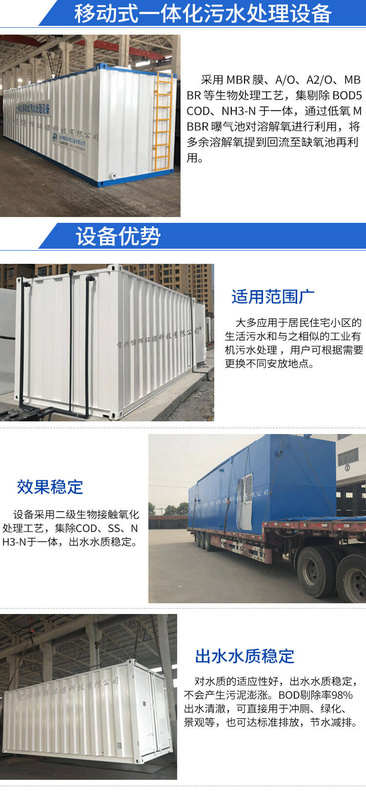 BH-JZ型集裝箱式一體化污水處理設(shè)備是博輝環(huán)??萍忌a(chǎn)的一種污水處理設(shè)備,它采用中空纖維膜生物反應(yīng)器(MBR)技術(shù),將膜分離技術(shù)、生物處理技術(shù)、智能化控制技術(shù)有機結(jié)合,整套設(shè)備經(jīng)優(yōu)化集成后布置在集裝箱體內(nèi),具有安裝快捷、移動方便、處理效果好、占地面積小、運行維護簡單等特點。出水可達(dá)到《城市雜用水水質(zhì)》GB/T18920-2002及《景觀環(huán)境用水水質(zhì)》GB/T18921-2002,即可達(dá)到國家高的《城鎮(zhèn)污水處理廠排放標(biāo)準(zhǔn)》GB/T 18920-2002一級B(或一級A)標(biāo)準(zhǔn),可直接排放或回用。
